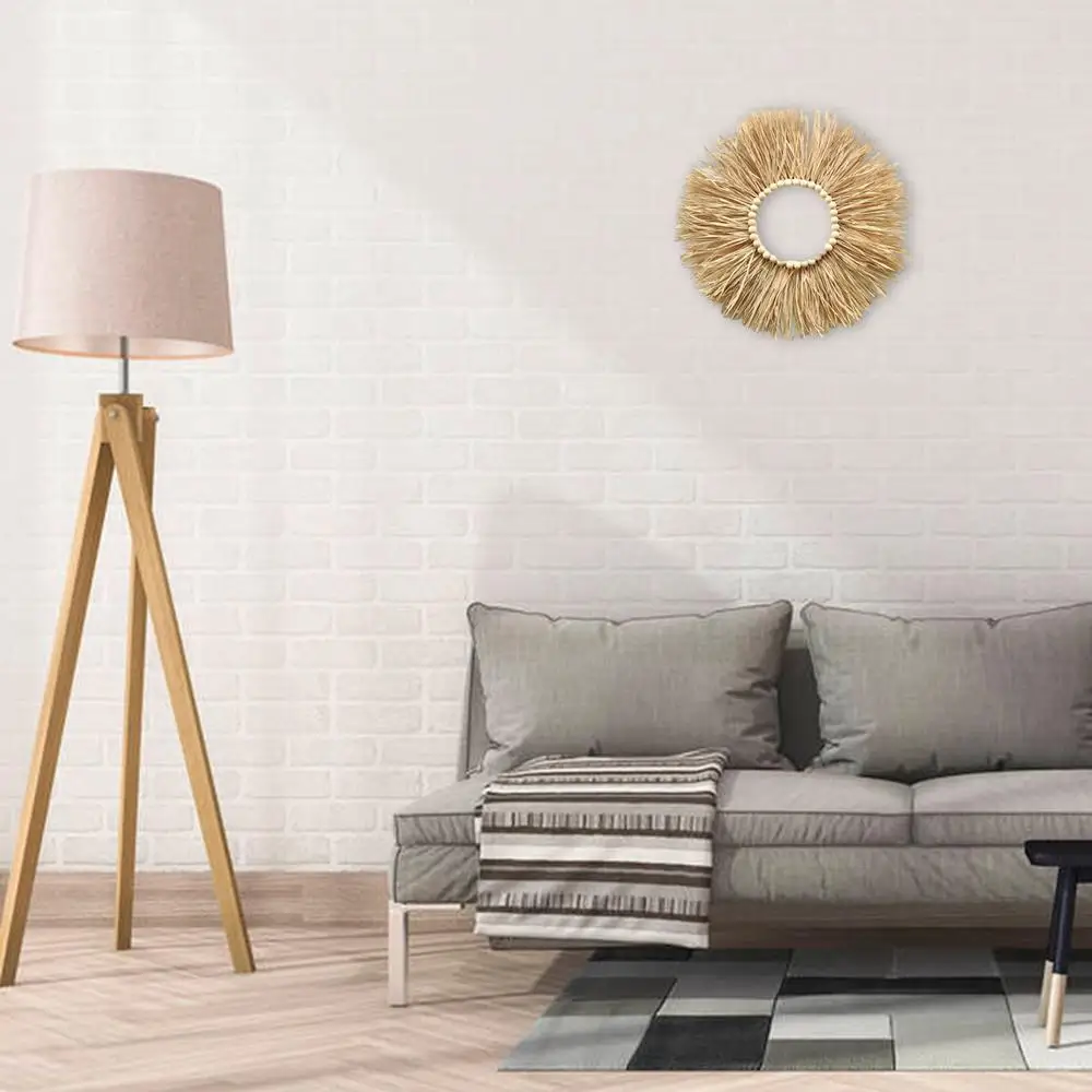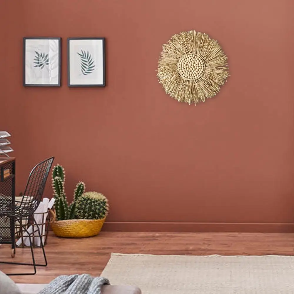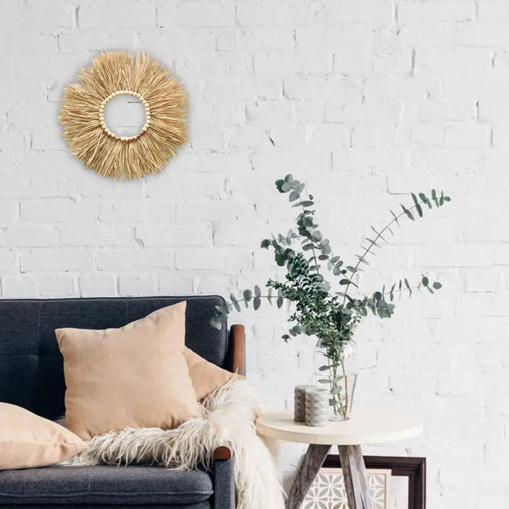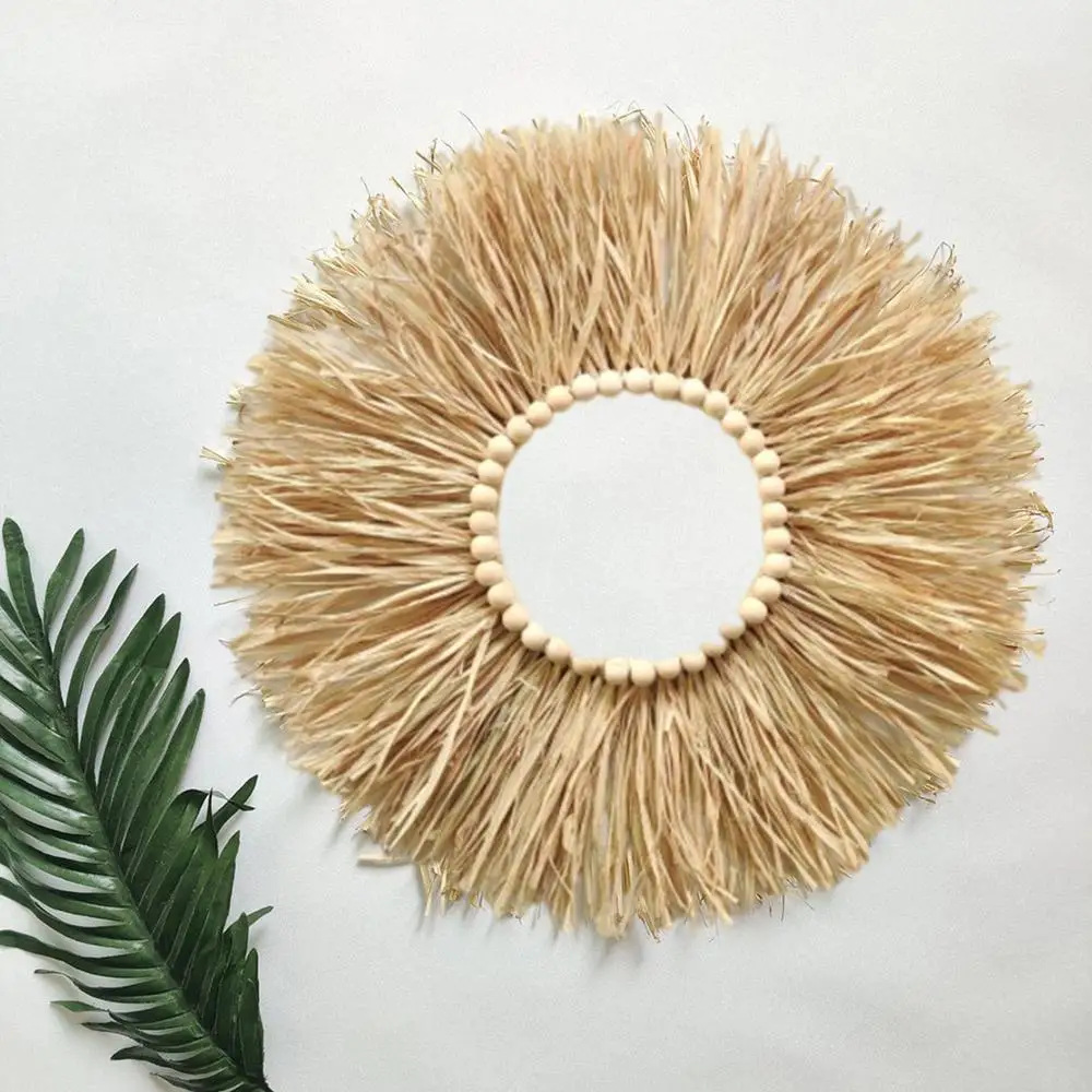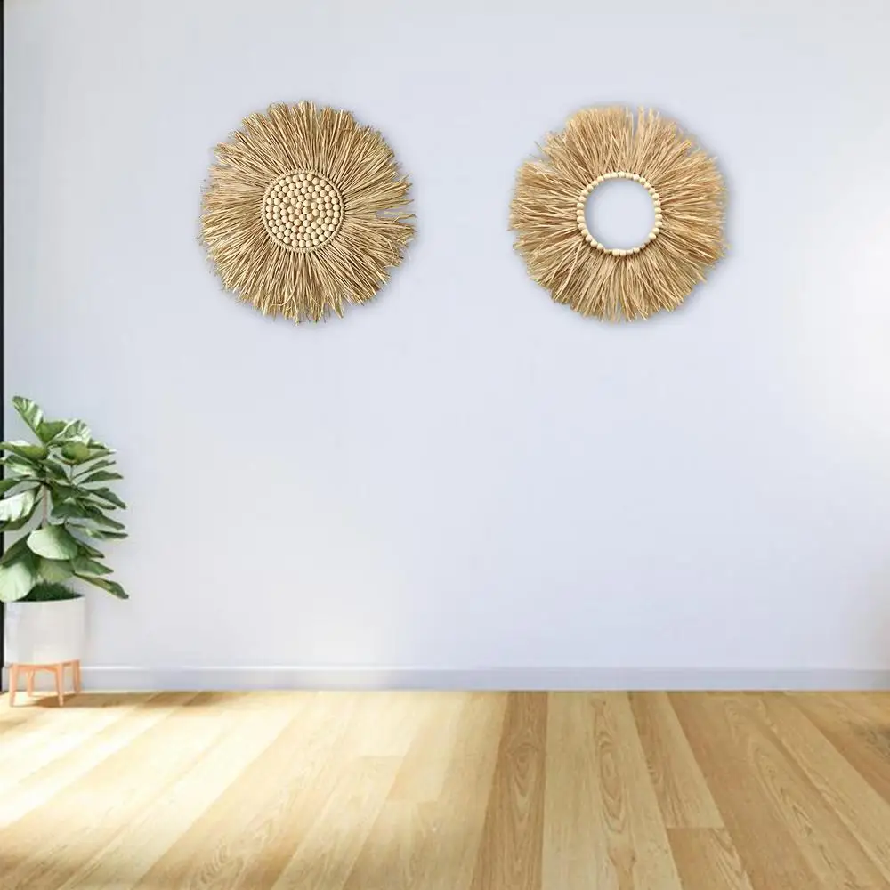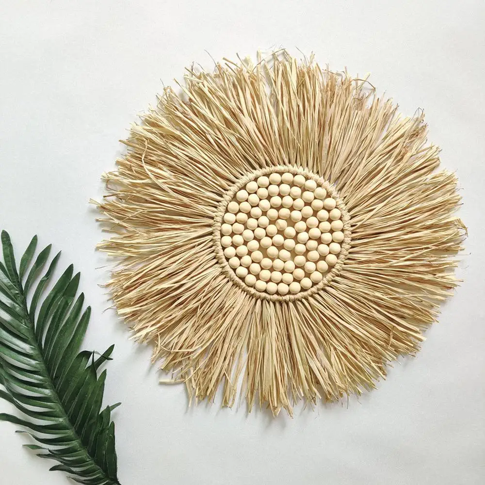 Natural Raffia Woven Bohemian Wall Decoration 40CM Round Wall Accents Handmade Scandinavian Hanging Decoration Boho Home Decor