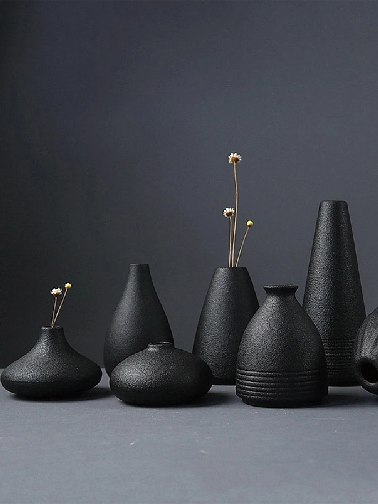 Vaso pequeno de cerâmica em estilo japonês, perfeito para quem busca uma peça decorativa minimalista e sofisticada. Produzido artesanalmente, seu acabamento preto fosco transmite equilíbrio, simplicidade e elegância, características marcantes do design japonês. Ideal para decorar mesas, prateleiras e cantinhos especiais, ele harmoniza facilmente com ambientes modernos, orientais ou minimalistas.